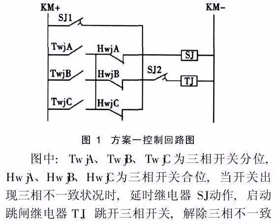 图1 典型断路器本体三相不一致保护回路